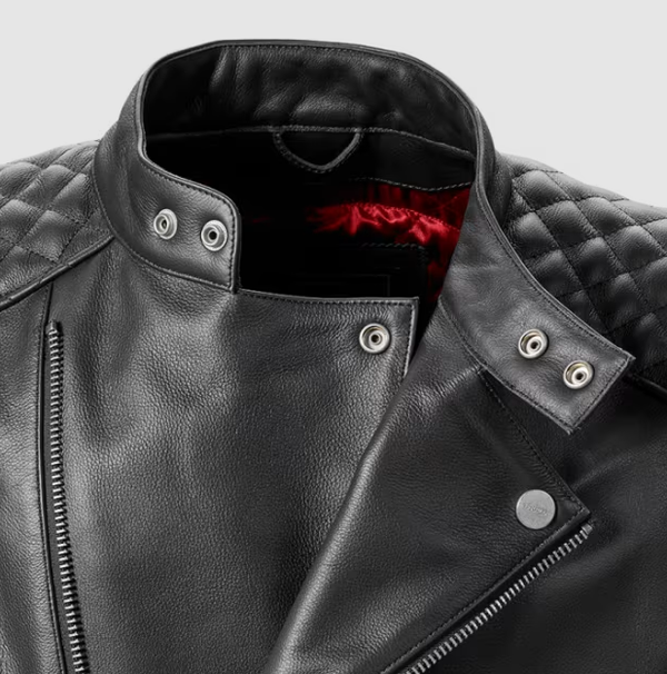 Fabriqué en cuir pleine fleur premium, avec un zip asymétrique, un détail de matelassage à l’épaule et un logo appliqué en bas du dos.
