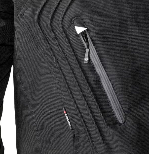 Un look routier grâce à un blouson en tissu technique TriTech avec une doublure en maille respirante pour plus de confort pendant la conduite. Des protections D3O amovibles aux épaules, aux coudes et dans le dos, un système de réglage à l’ourlet et aux poignets, des inserts réfléchissants sur les manches et des logos accentuent l’aspect qualitatif de ce blouson